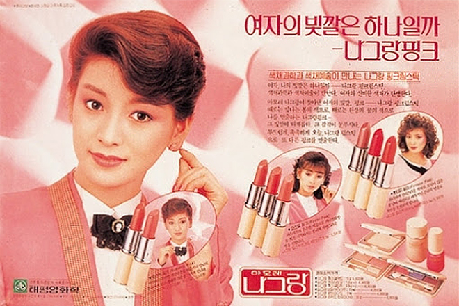 1980년대에 접어들면서 저희 립스틱을 포함한 컬러 메이크업 시장 전체가 활기를 띄기 시작했어요. 당시 사람들에게 문화 혁명과도 같았던 컬러 TV가 보급되면서 브라운관 속 배우, 모델, 가수 등이 여성들의 색조 화장 본능을 일깨운 것 같아요. 개성을 추구하고 화장이 자신을 표현하는 수단으로 자리 잡으면서 메이크업 시장은 더욱 활성화 됐습니다. 여기에 1988년 서울 올림픽 개최 전후로 화장품 수입과 해외 여행 자유화가 더해졌어요. 외국의 다양한 컬러 메이크업 제품이 국내로 유입됐고 저는 새로운 친구들이 많이 생기기 시작했답니다. 그 덕에 사람들의 메이크업이 더욱 다양하고 과감해졌던 것 같아요. 이때부터는 저희들의 컬러가 다변화하기 시작했는데, 태평양의 메이크업 브랜드 나그랑이 로맨틱하고 사랑스러운 파스텔 핑크 컬러를 출시하며 립 컬러의 다양화를 이끌었습니다. 특히 배우 황신혜가 핑크 립스틱을 바르는 나그랑의 핑크 립스틱 CF가 TV로 나오면서 핑크 컬러가 대유행을 하기도 했습니다. 아마도 이 당시 황신혜가 립스틱 완판녀의 시작이지 않았나 생각해요.