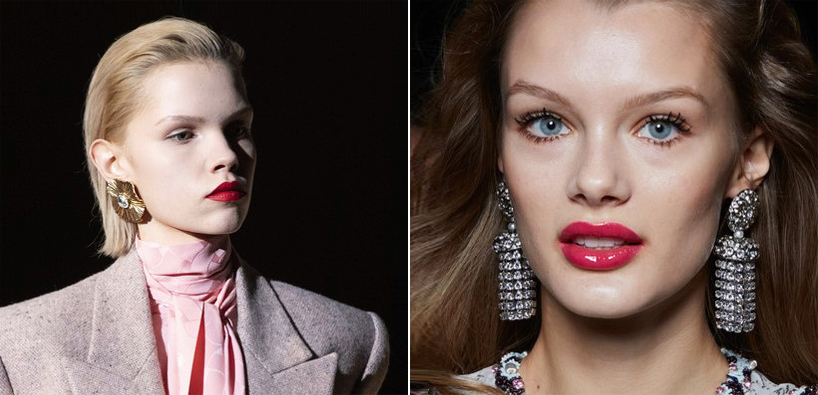 정확한 립 라인과 윤기나는 레드 립(Saint Laurent, Lanvin)