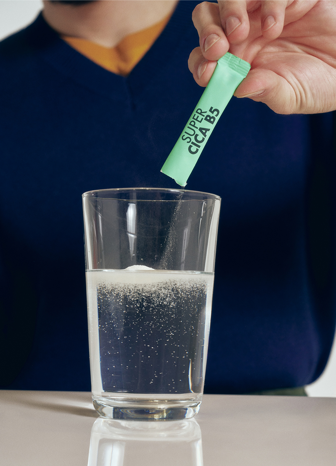 실제로 제 일상에도 바이탈뷰티가 깊숙이 자리하고 있는데요. 특히 고함량 세라마이드와 판토텐산 조합의 '슈퍼시카 B5'는 제가 애정하는 진정 아이템입니다. 일반적인 세라마이드 화장품은 분자 크기가 크기 때문에 피부 깊숙이 흡수되기 어려운 반면, '먹는 세라마이드'는 혈류를 통해 보충할 수 있다는 점이 장점이죠. 무엇보다 레몬 요거트 맛이라 상큼하게 즐길 수 있어서, 저는 하루 2포씩 루틴으로 챙기고 있습니다. 아침에 회사 출근해서 1포, 오후에 졸릴 때 1포 이렇게요. 여기에 탄산수와 레몬즙을 더하면 근사한 레모네이드 한 잔이 됩니다. 작은 루틴이지만, 하루의 컨디션을 다르게 만드는 장치가 되어주죠.