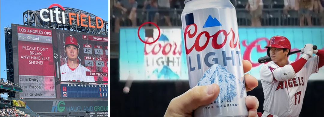 비슷한 사례로 2023년 쿠어스 맥주가 있습니다. 오타니 쇼헤이 선수의 파울볼로 전광판 광고 일부가 깨져 검은 박스가 생기자, 쿠어스 맥주는 이 상황을 기회로 활용했습니다. 깨진 디자인을 그대로 반영해 광고를 제작하고 에디션 제품까지 출시하며 새로운 바이럴을 유도했죠. 모두 우연한 사건을 빠르게 포착하고 기민하게 움직였기에 가능한 일이었습니다.