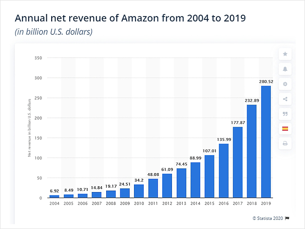 2004-2019 Annual net revenue, Statista.com