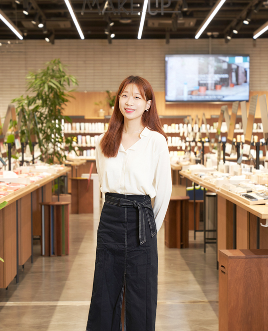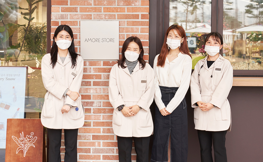 A. 안녕하세요. 저는 신사업팀에서 아모레성수, 아모레스토어 광교 등 새로운 스타일의 매장과 콘텐츠를 기획하고 운영하는 일을 맡고 있습니다. 브랜드 간의 콜라보레이션으로 이뤄지는 팝업 스토어와 매장 자체에서 진행하는 이벤트·서비스 등의 오프라인 활동, 그리고 유튜브·인스타그램과 연계한 온라인 활동 등을 통해 고객에게 다채로운 경험을 제공하고 매장을 인지시키는 커뮤니케이션 업무를 담당하고 있습니다.