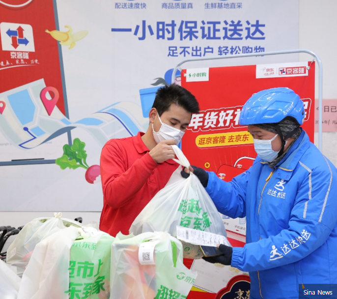 징동닷컴은 또한 2021년 이래로 중국 내 15만 개의 오프라인 상점과 제휴해 자사의 1시간 배송 플랫폼인 징동샤오시고우(京东小时购)를 통해 광범위한 상품의 온디맨드 배송 서비스를 제공해왔다. 소비자들은 이 서비스를 통해 온라인으로 오프라인 상점에서 판매하는 상품을 주문하면, 온디맨드 배송 서비스를 통해 상품을 받을 수 있다. 징동다오쟈(京东到家) 플랫폼 또한 징동닷컴의 메인 이커머스 사이트를 통해 오프라인 매장에서 상품을 주문하면 상품을 배달해주는 하이퍼 로컬 서비스다.